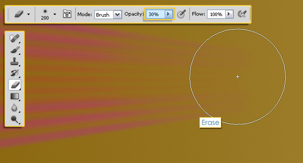 Use a soft brush with an Opacity value of 30% to slightly erase the end of the extension, so that it looks feathered out.