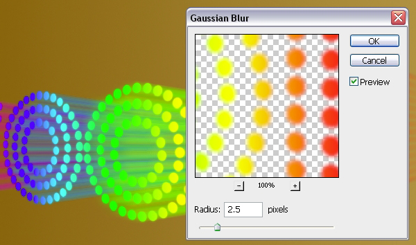 Go to Filter -> Blur -> Gaussian Blur, and enter 2.5 for the Raduis.