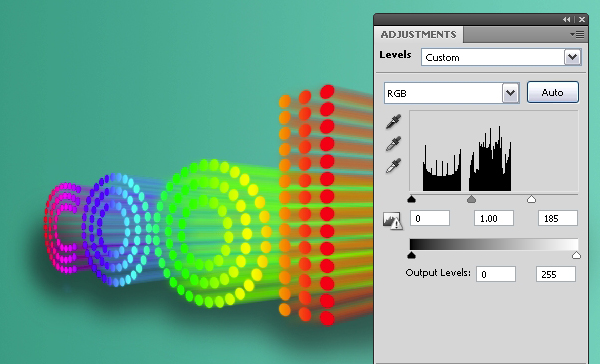 Once again, click the Create new fill or adjustment layer, but choose “Levels” this time. Change the values as shown below: