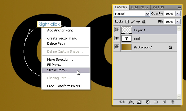 Create a new path near the inner edge of the letter, and stroke the path on a new layer.