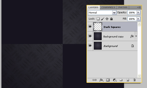 Create a new layer on top of all layers and call it “Dark Squares”, and fill the selections with the Background color (#100e19). Go to Select -> Deselect (or press Ctrl + D) to get rid of the selections.