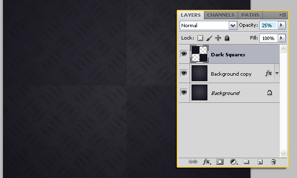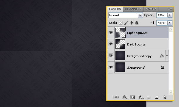 Create a new layer on top of all layers and call it “Light Squares”. Repeate the previous steps to create two more selections in the empty corners, and this time use the Foreground color (#393943) to fill the selections.