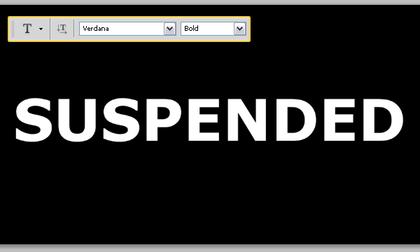 First create a new document, 1000×500 pixels, with a black background. Then, create your text in white. The font used is Verdana, and the size is 120pt. Choose Bold from the Font Style selection box next to the Font Family box in the Options bar.