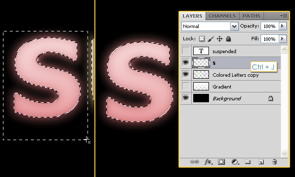 Once the letter is selected, press Ctrl + J to copy it and paste it in a new layer.
