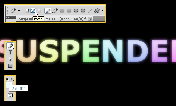 Set the Foreground color to #e5ffff, and pick the Pen Tool. Make sure to clik the Paths icon in the Options bar as well.