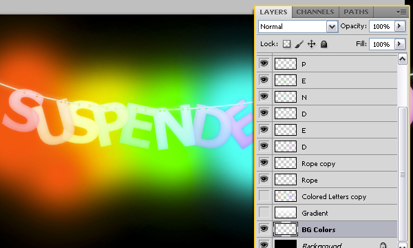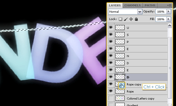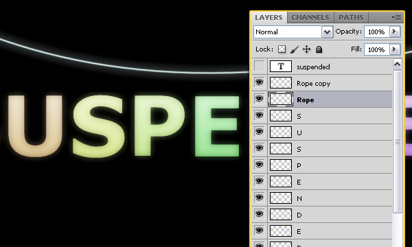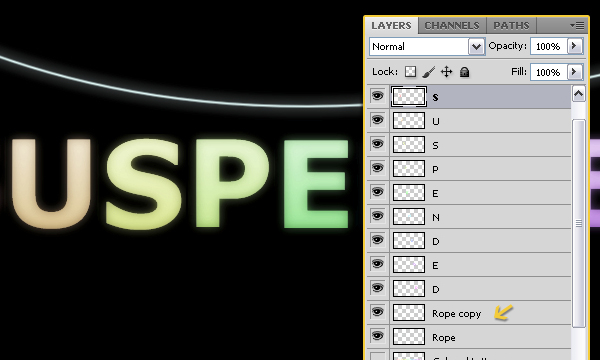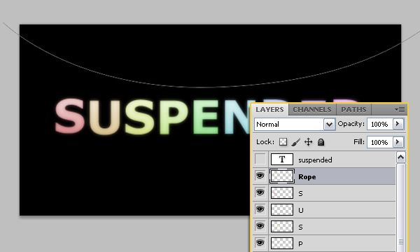 Drag the two “Rope” layer so that they are under all the letters’ layers.