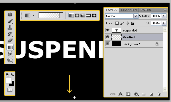 Create a new layer on top of the Background layer and call it “Gradient”. Select the Gradient Tool, and set the Foreground color to White. Create a Foreground to Transparent gradient from top to bottom.