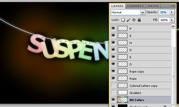 Set the “BG Colors” layer’s Opacity to 25%. And we’re done!.