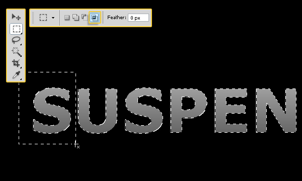 Now, create a selection from the original text layer again (Ctrl + Click on the original text layer’s thumbnail), use the Rectangular Marquee Tool, and click the Intersect with Selection icon in the Options bar, then draw a rectangle around the first layer.